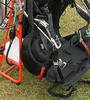 The integrated rescue container is made out of flexible neoprene to ensure the compatibility to different rescue chutes. It can be zipped to either side of the harness. The opposite side then has an easy to get to pocket. The v-line is out of the pilot's line of view and integrated into the harness